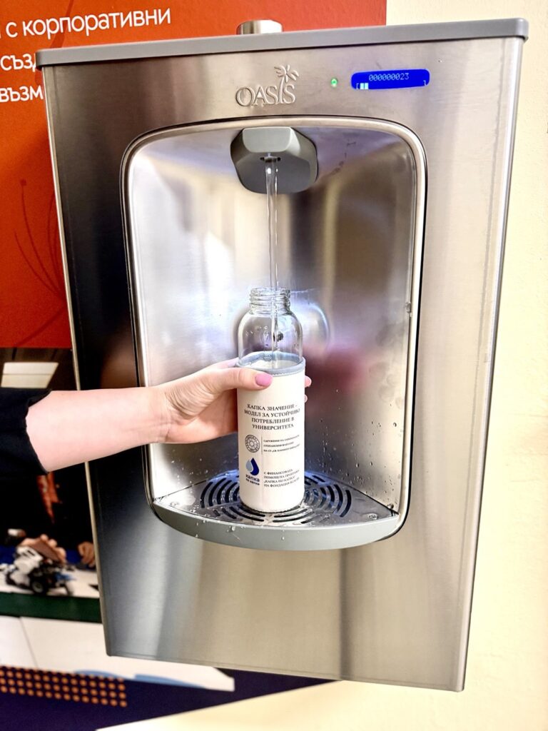 В рамките на проект „Капка значение – модел за устойчивост в Университета“ в сградата на Стопанския факултет на Софийския университет „Св. Климент Охридски“ бяха инсталирани нови устройства за филтриране на питейна вода с възможност за пълнене на лични бутилки. Те са разположени на втори етаж, трети етаж и четвърти етаж и вече са на разположение на всички ползватели на сградата.