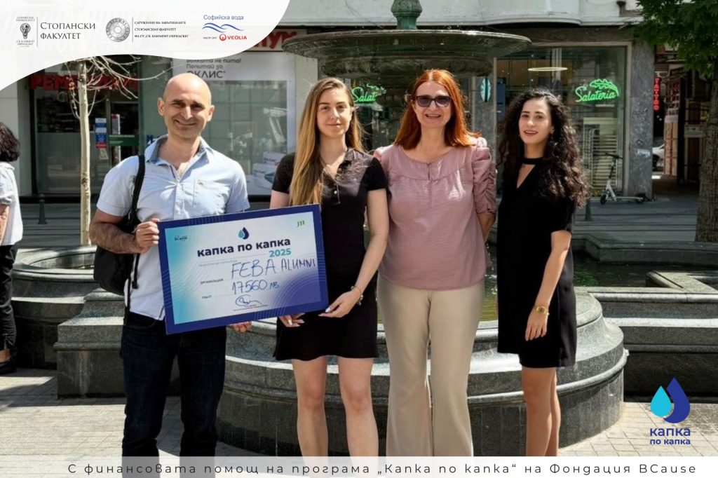 Сдружението на завършилите Стопанския факултет официално даде старт на проекта „Капка значение – модел за устойчивост в Университета“, реализиран с финансовата подкрепа на програма „Капка по капка“ на фондация BCause, в размер на 17 560 лева.