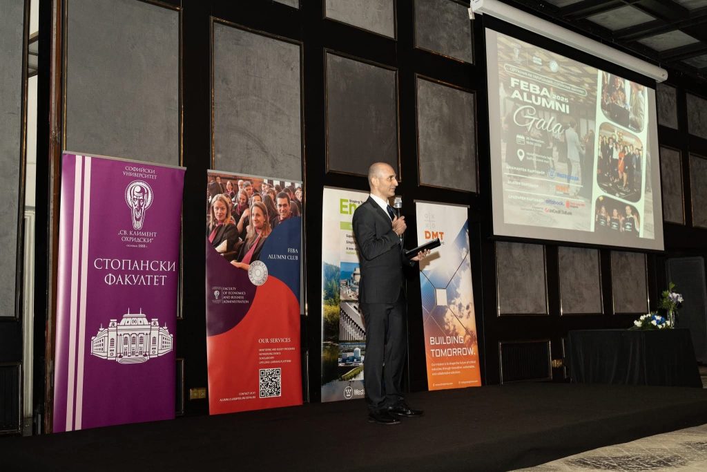 На 26 ноември 2025 г. в зала Sofia Grand на хотел „Маринела“ се проведе FEBA Alumni Gala 2025 — ежегодната гала вечер на алумни общността на Стопанския факултет, която тази година се проведе в контекста на отбелязването на 35 години от възстановяването на факултета към Софийския университет „Св. Климент Охридски“. Събитието утвърди още веднъж ролята на общността на Стопанския факултет като сплотена, активно развиваща се и стратегически значима, която обединява поколения икономисти, лидери и професионалисти.